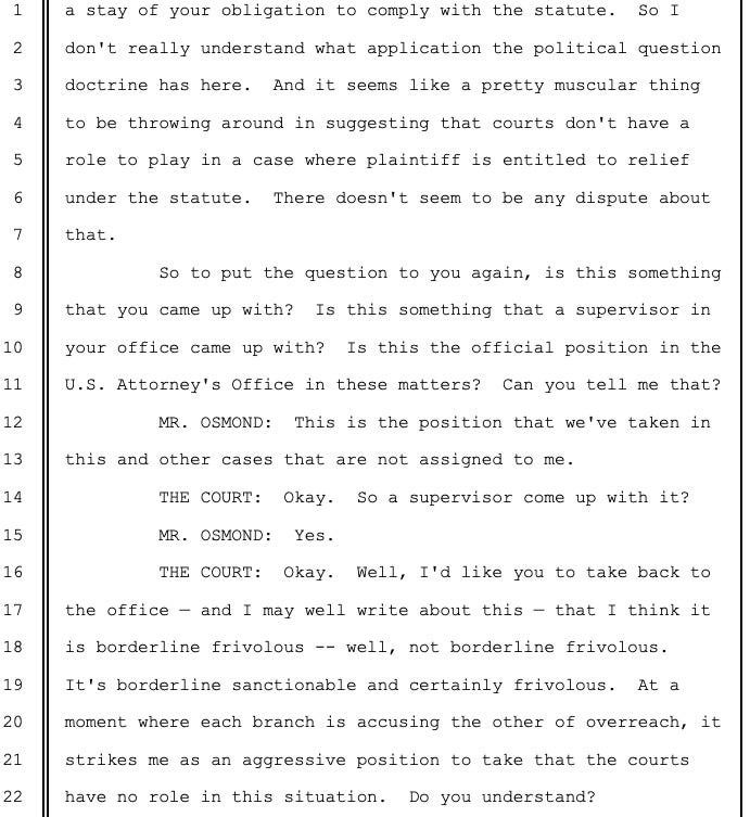 Shutdown, Shutup: “honestly I think that this is frivolous, if not sanctionable”